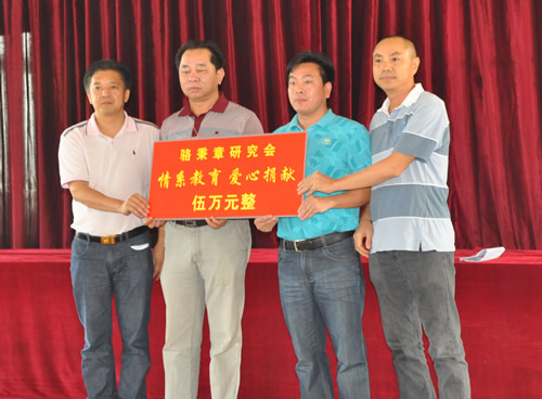 9月22日,值传统的中秋佳节到来之际,骆秉章研究会和花都电视台联手到狮岭镇振兴村举行捐资助学活动。区政协副主席汤浩昌,花都电视台台长李志明,狮岭镇党委书记徐伟新,骆秉章研究会会长骆鼎、常务副会长兼秘书长李远、副会长刘兆江、王琳,理事江毅等领导参加了本次活动。