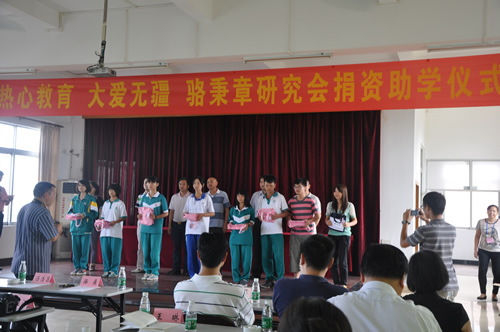 骆鼎会长还寄语受捐的贫困学生要正视生活中的困难,用知识改变命运,他以骆秉章为例,勉励大家要在苦难中成长、在挫折中成功、在逆境中成材。