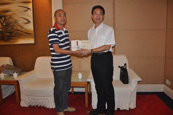论坛期间,骆鼎会长代表研究会向广州炎黄文化研究会会长,原广州市人大常委会副主任龙建安捐赠了我会副会长李远主编的《骆秉章研究论文集》等书籍。